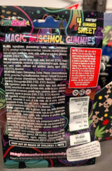 Καλούνται οι καταναλωτές που έχουν προμηθευτεί παρόμοια προϊόντα (ενδεικτικές φωτογραφίες κάτωθι), τα οποία αναφέρουν στην επισήμανσή τους την παρουσία μουσκιμόλης ή Amanita muscaria ή διατίθενται με ονομασίες όπως «Amanita Gummies», «Mushroom Muscimol Gummies» “Magic Maushroom” κ.λπ., να μην τα καταναλώσουν.